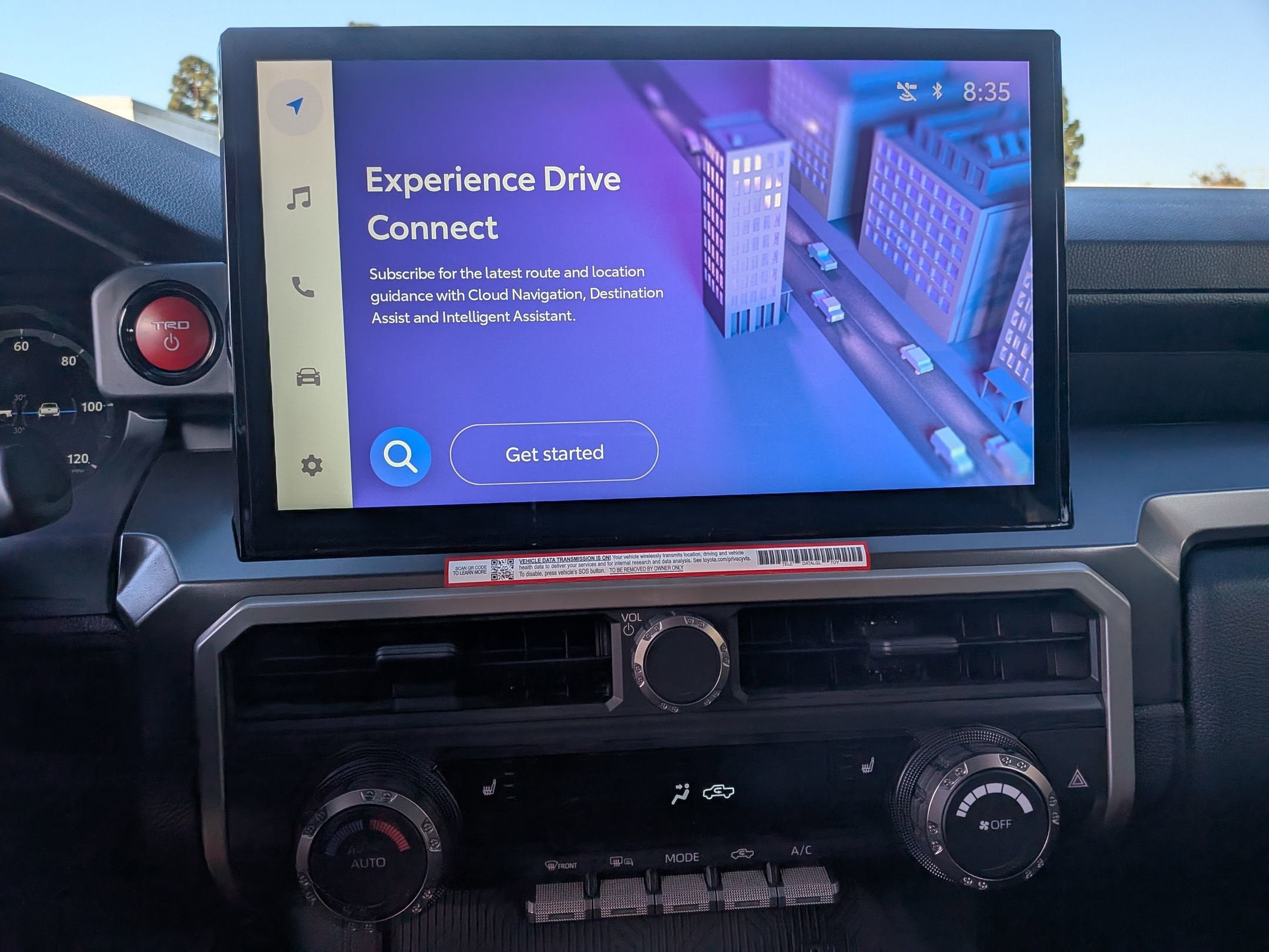 33. Operability and accuracy of Dynamic Navigation depends on certain factors outside of Toyota's control in order to operate, including cellular network availability, a cellular connection, and GPS signal. Without any one or more of these things, operability may be limited or precluded. Services not available in every city or roadway. Use common sense when relying on information provided. Services may vary and are subject to change without notice. Services require account registration through Toyota app and acceptance of Connected Services Terms of Use at https://www.toyota.com/privacyvts/images/doc/Toyota%20-%20Connected%20Services%20Terms%20of%20Use.pdf and Master Data Consent. Data charges may apply. For Toyota Connected Services’ vehicle-generated data collection, use, sharing, and retention practices and agreements, see https://www.toyota.com/privacyvts. The Dynamic Navigation trial period is at no extra cost and trial begins the earlier of vehicle hits 100 miles or 1 year after multimedia system manufacture date (regardless of purchase or lease date). Paid subscription required after trial (if applicable). Terms of Use apply.
