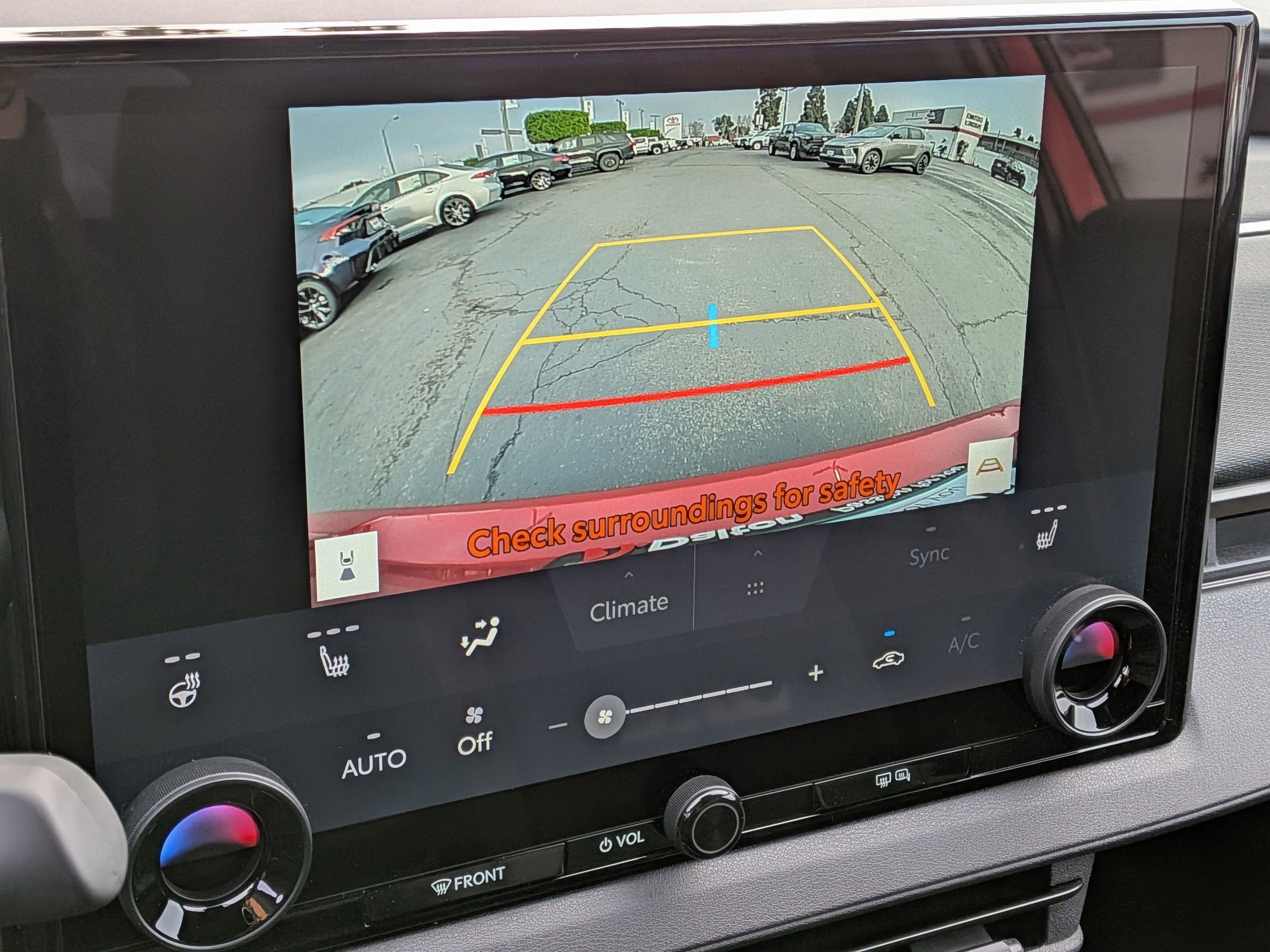41. The Panoramic View Monitor does not provide a comprehensive view of the area surrounding your vehicle. Look around to confirm clearance. See Owner’s Manual for limitations.