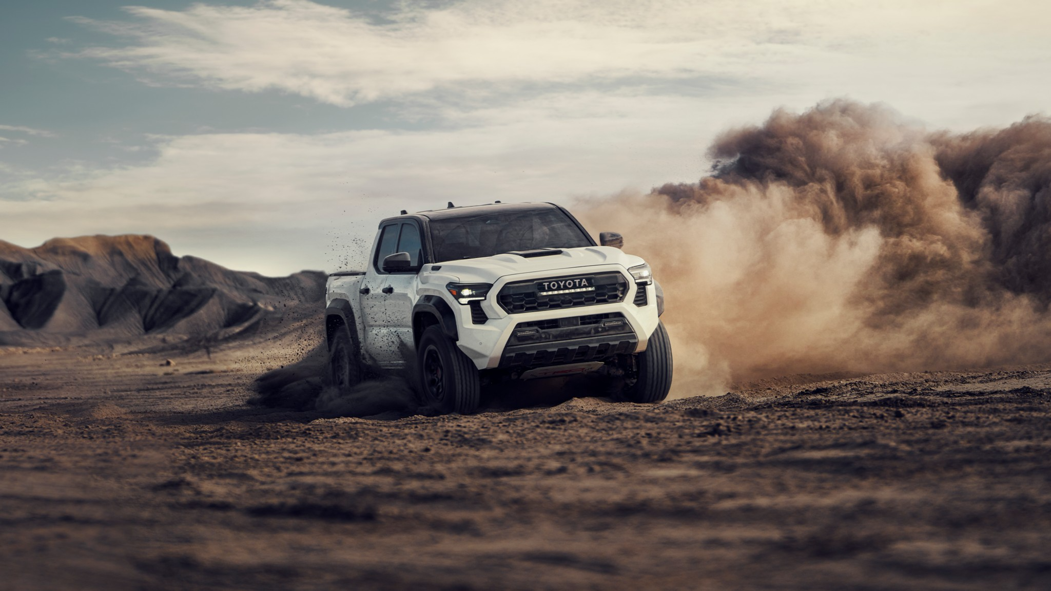 Of the 2024 Toyota Tacoma model’s eight-trim roster, two are brand-new and supremely capable off-road. The 2024 Toyota Tacoma Trailhunter boasts rugged features such as an ARB steel rear bumper and modular sport bar, along with Old Man Emu® shock absorbers. The other, equally impressive trim is the 2024 Toyota Tacoma TRD Pro, which offers equipment such as adjustable FOX® QS3 internal bypass shocks and 18-inch TRD Pro alloy wheels with 33-inch tires.