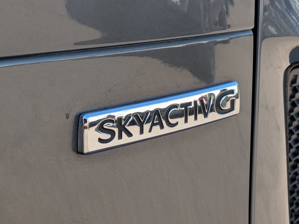 Inside, the cabin offers a refined and comfortable driving experience with half-leatherette seating, heated front seats, power driver seat, leather-wrapped steering wheel and shift knob, and dual-zone automatic climate control. The MAZDA CONNECT infotainment system with Apple CarPlay and Android Auto integration, HD radio, and steering-wheel-mounted controls keeps you connected wherever you go.