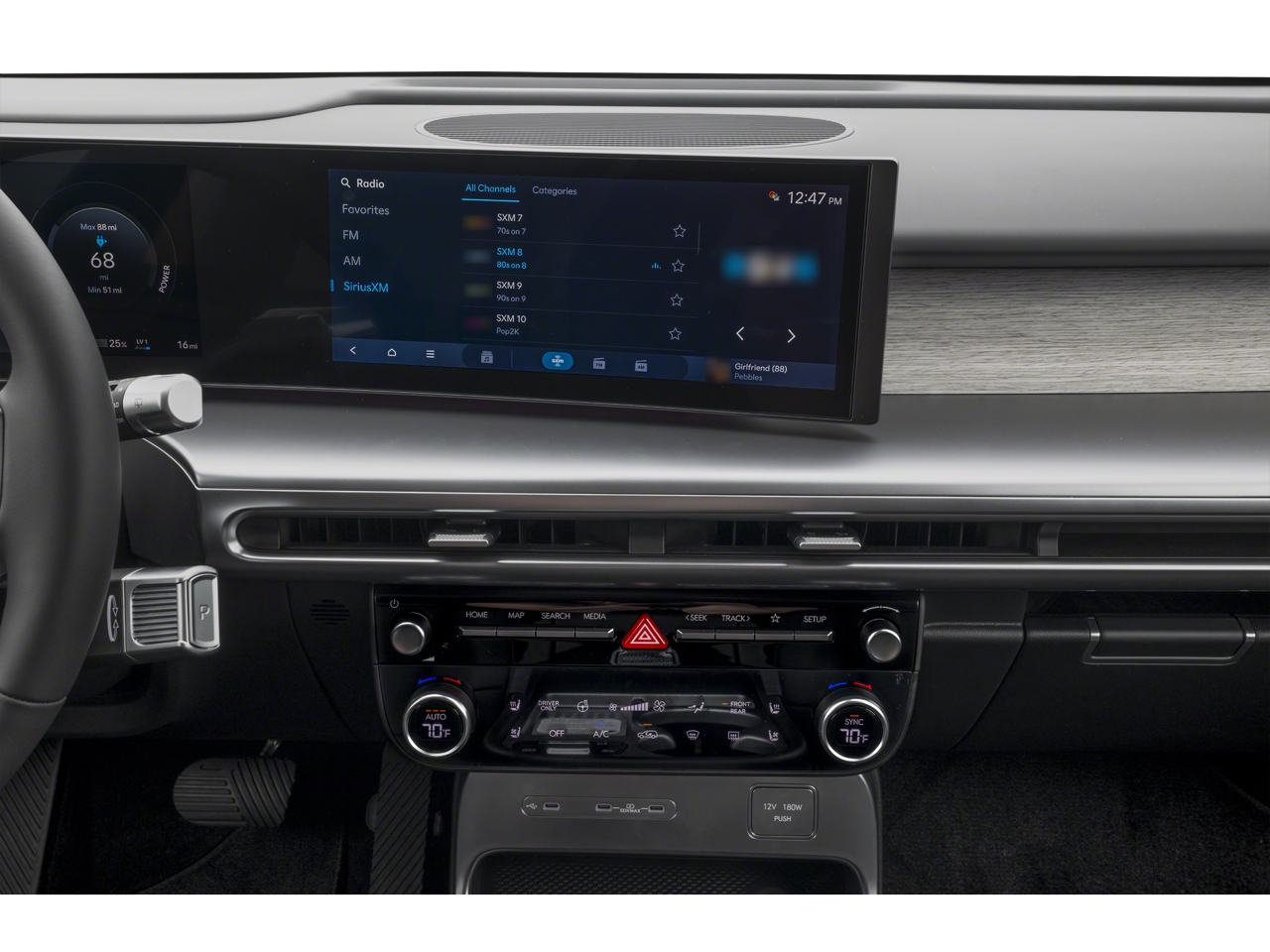 - Radio: AM/FM/SiriusXM/HD Audio System -inc: 12.3" navigation, 8 speakers, wireless Android Auto and Apple CarPlay, Blue Link connected car system, vehicle Wi-Fi hotspot, USB input, Bluetooth® multiple device connection, Over-the-Air (OTA) Controller ECU and map/multimedia software update capability